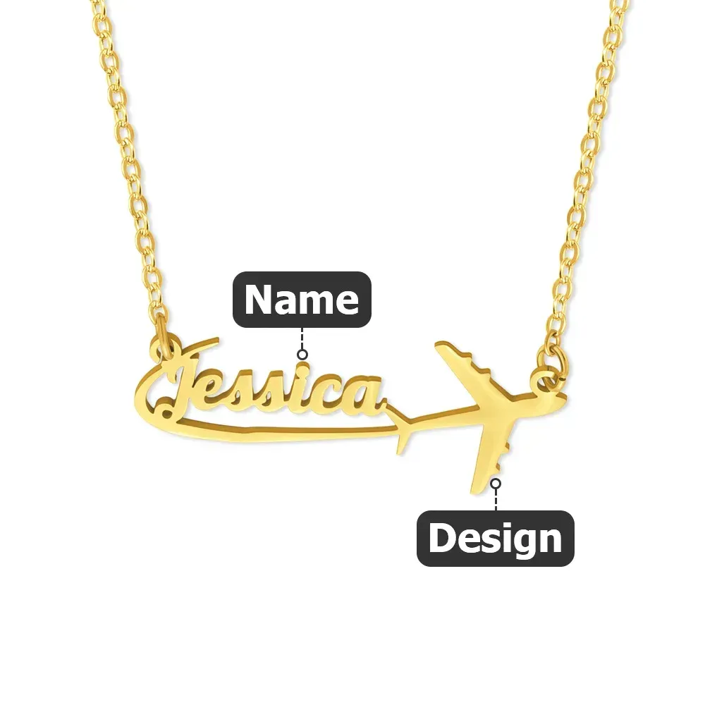 Personalized Airplane Sterling Silver Name Women Necklace Dainty Jewelry Birthday Anniversary Gift for Travel Lovers Pilots Flight Attendants